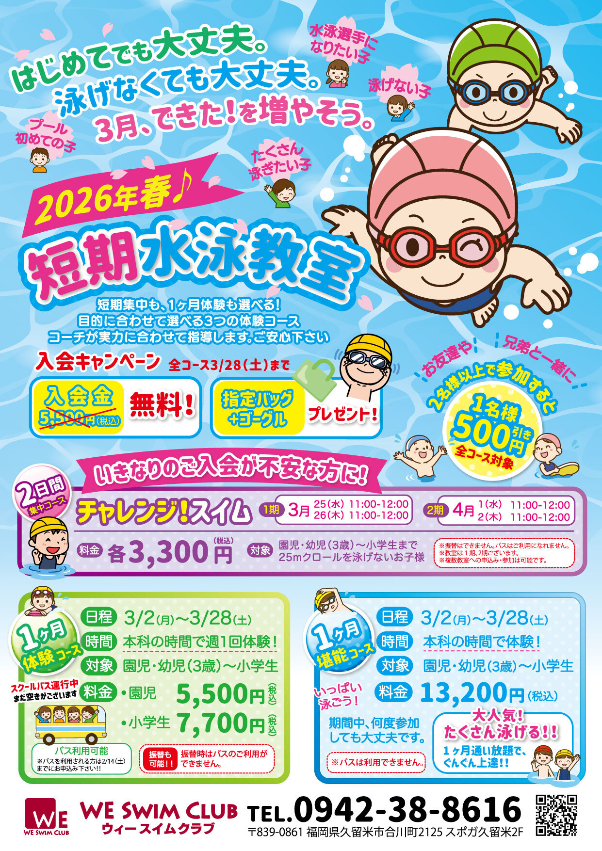 いつもお世話になっております。WEスイムクラブです。3月に春季短期水泳教室を開催致します。